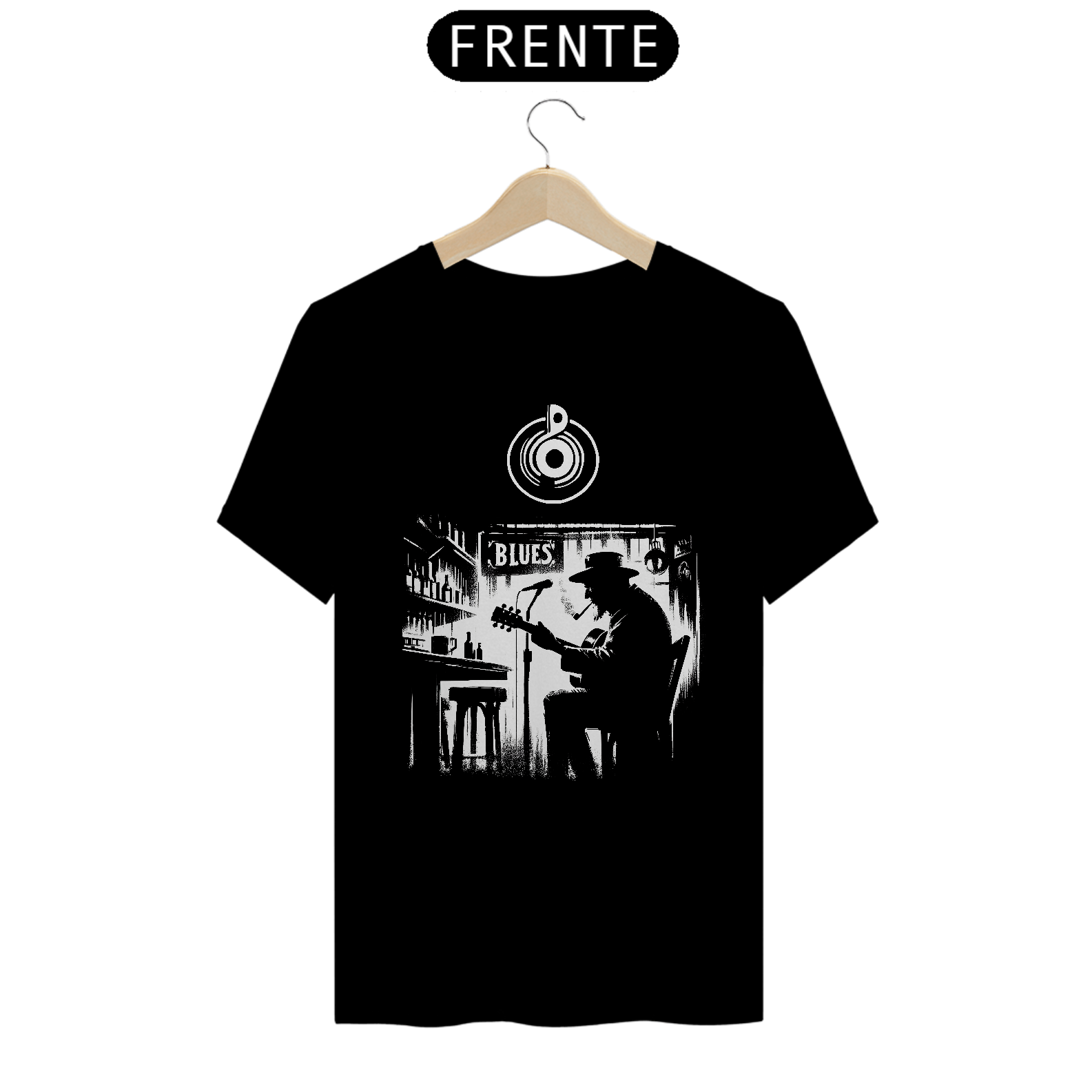 Para quem carrega a alma da música no peito, essa camiseta é um verdadeiro tributo ao velho e bom blues. Com uma arte impactante em preto e branco da SHOUT, ela retrata um bluesman solitário tocando sua guitarra num bar intimista - uma cena que transmite emoção, história e autenticidade.